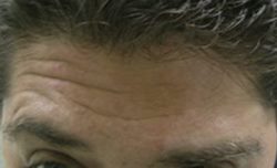 arrugas (ver foto) Aquí se aplico solamente en un lado de la frente y a